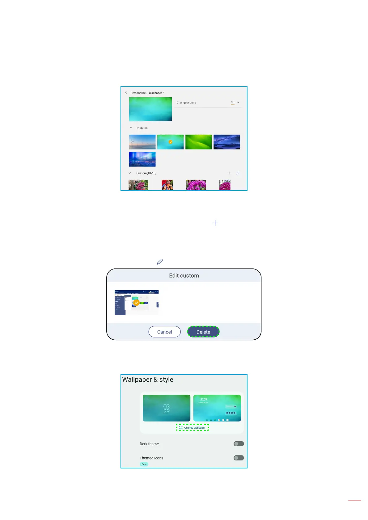 Note: To delete your custom images, tap . Then select the image and tap Delete.
