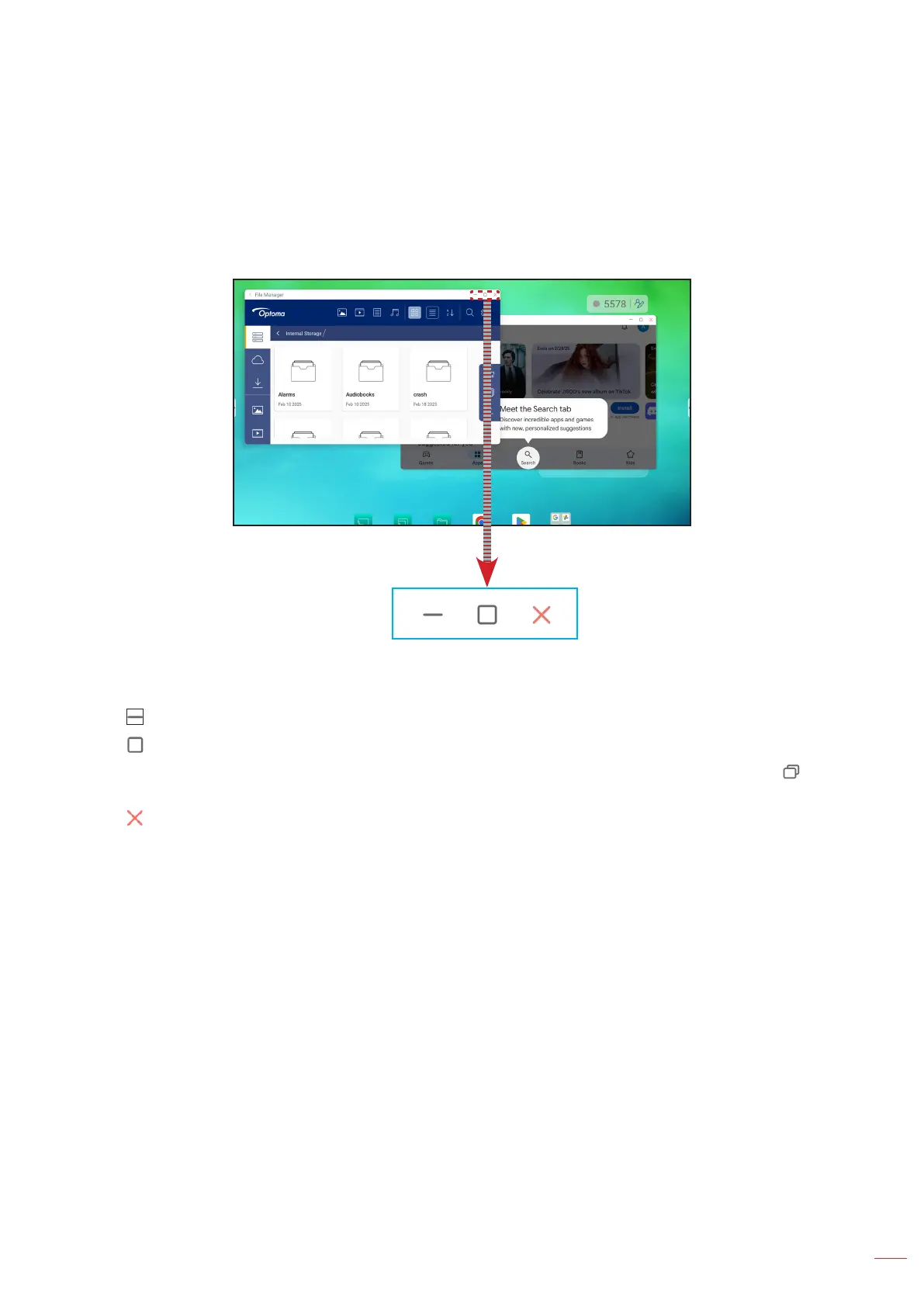 - Tap or drag the app window to the right or upper corner of the screen to view the app in full screen mode.