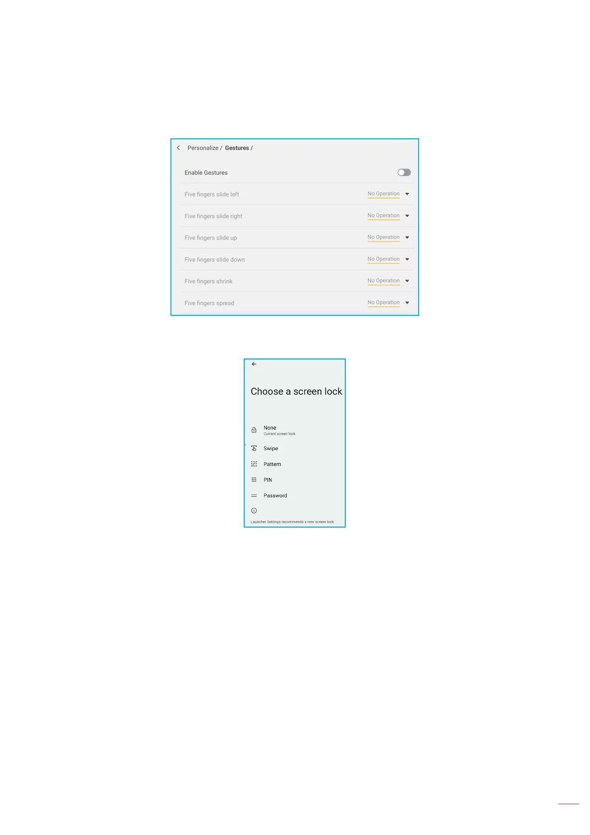 PIN, and Password. Select None if you want to keep the screen unlocked.