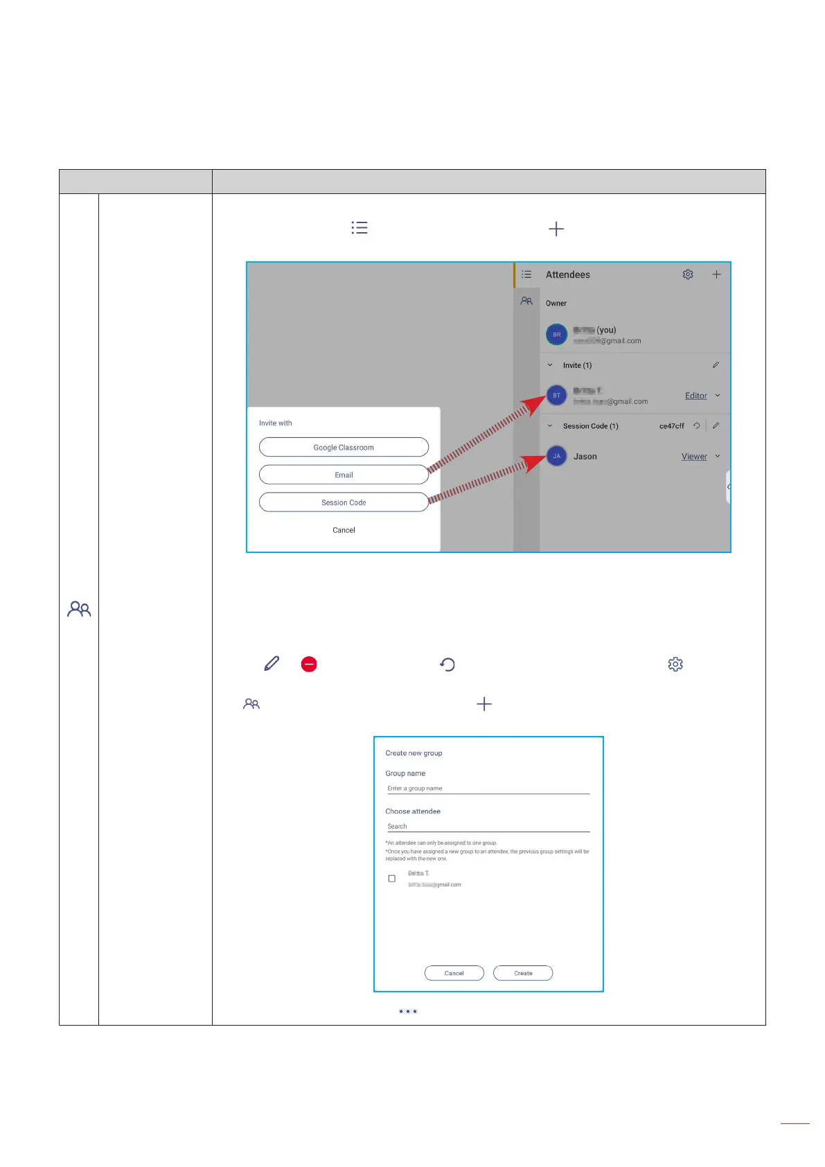 delete ( ⇒ ) attendees, renew ( ) the session code, and congure ( ) attendee