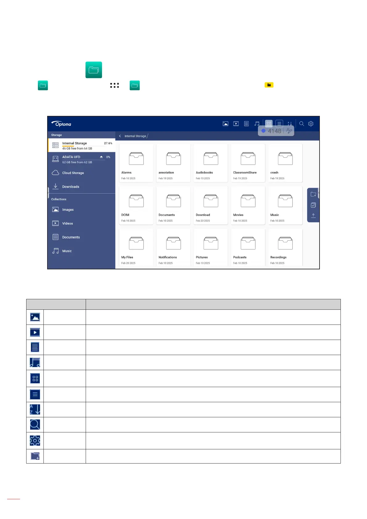 Images Display only image les in the selected storage location.