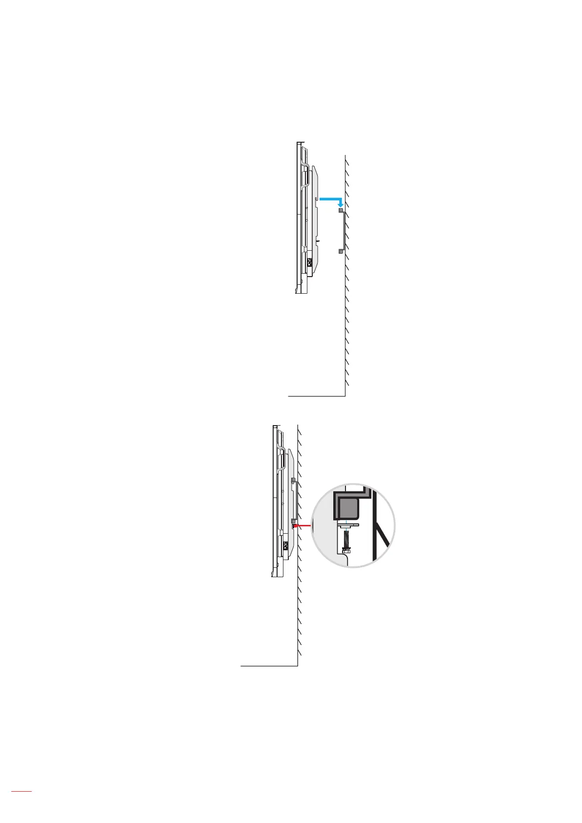 • Screws must be tightly secured; however, to avoid damage to the mounting brackets, wall mount, or