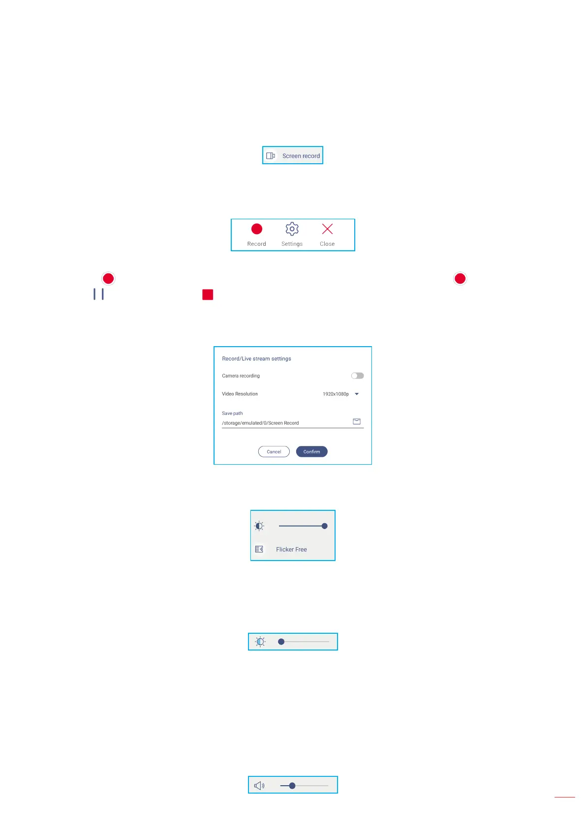 • Select Screen record from the OSD ⇒ Shortcut menu to record video from the panel’s screen and connected
