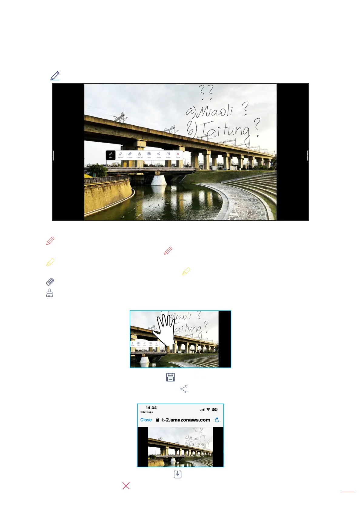 • To share the annotation to other wireless devices, tap . Make sure your wireless device is connected to the