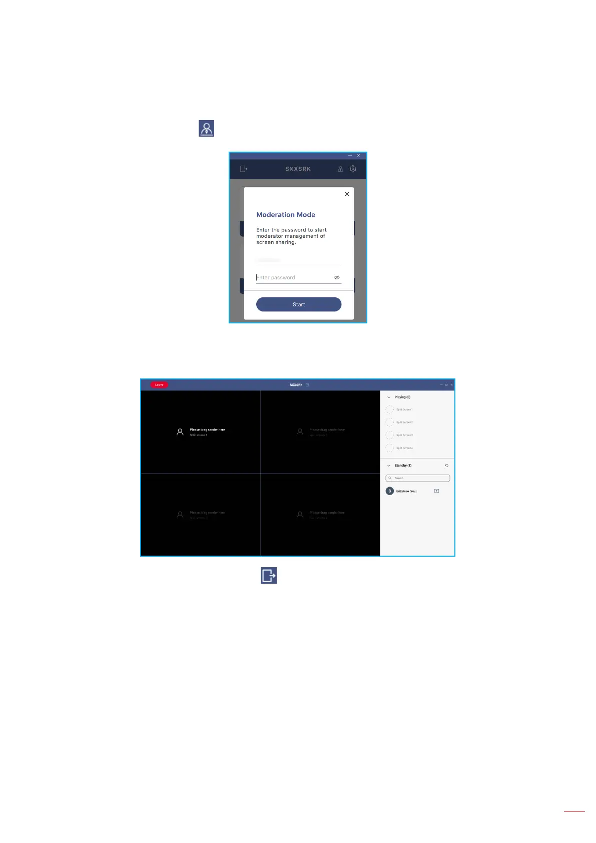 • Moderation Mode to start moderating the current screen sharing session. Enter your password