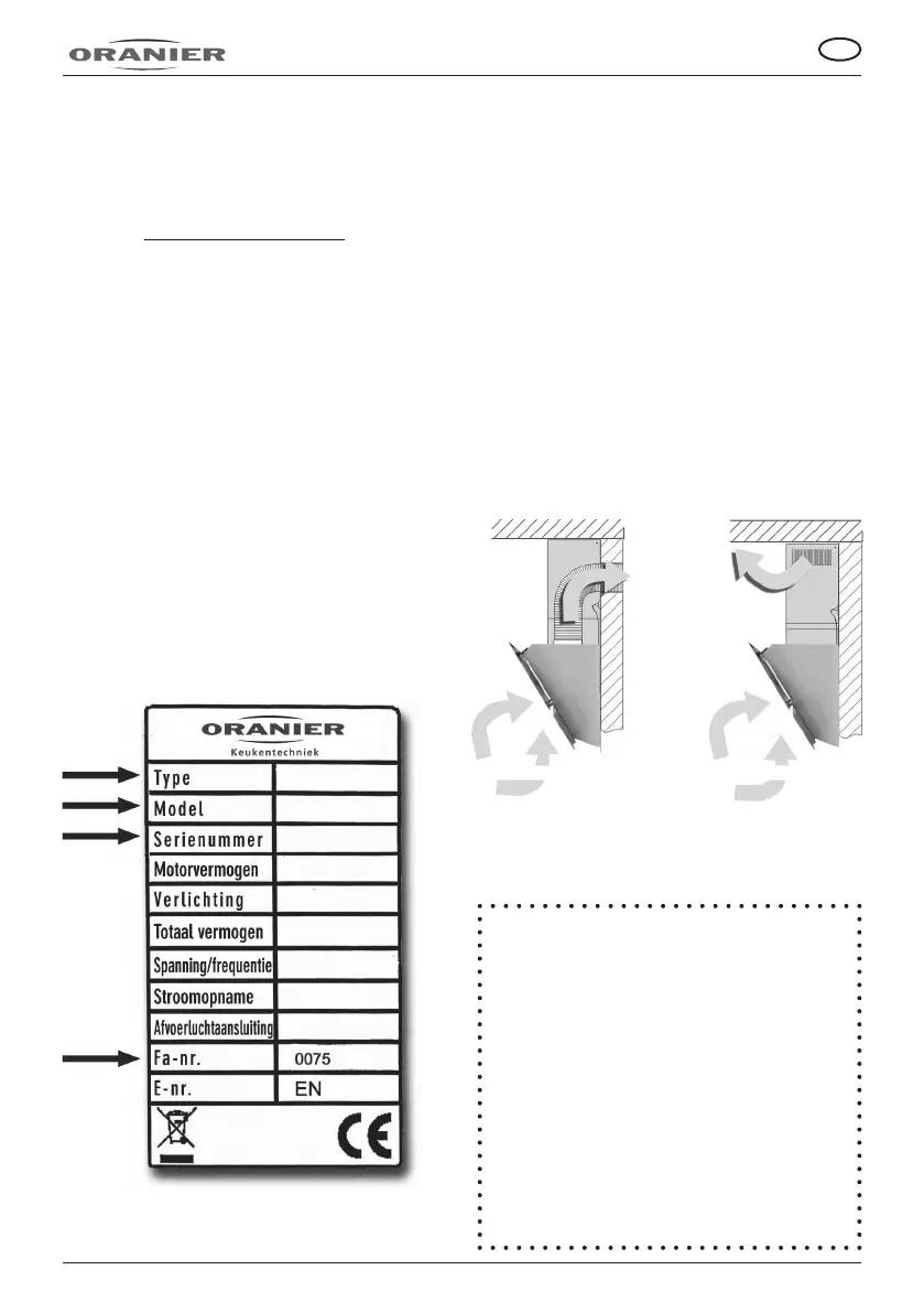Bij afvoerluchtbedrijf (Afb. 7, aanbevolen) wordt de damp