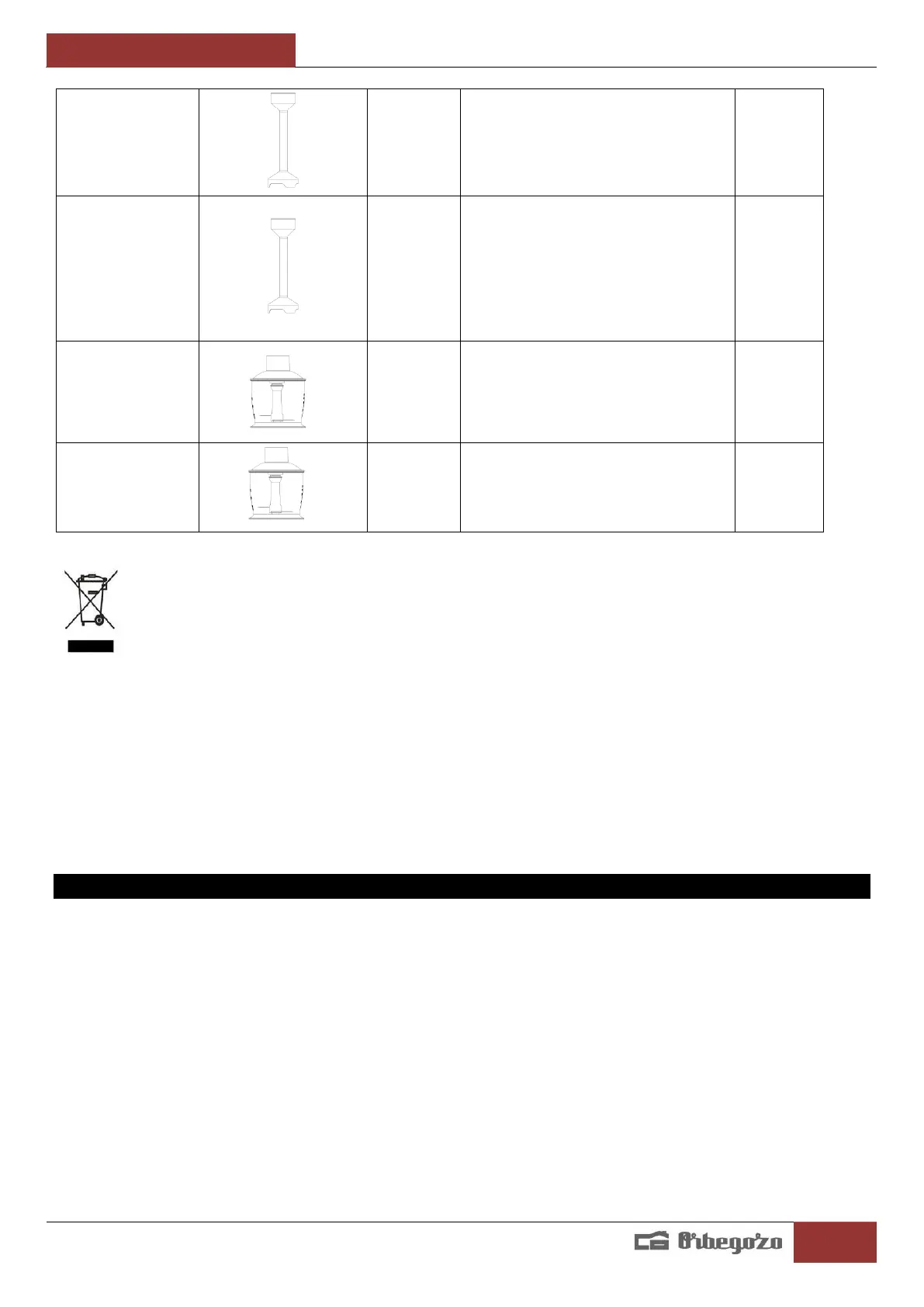 Orbegozo n'est pas responsable des composants et accessoires soumis à l'usure due à l'utilisation, ainsi que des