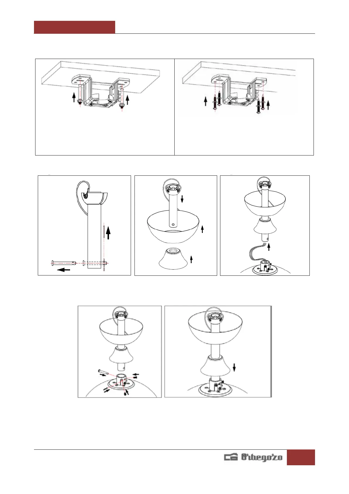 On concrete ceilings, drill two 8mm holes and
