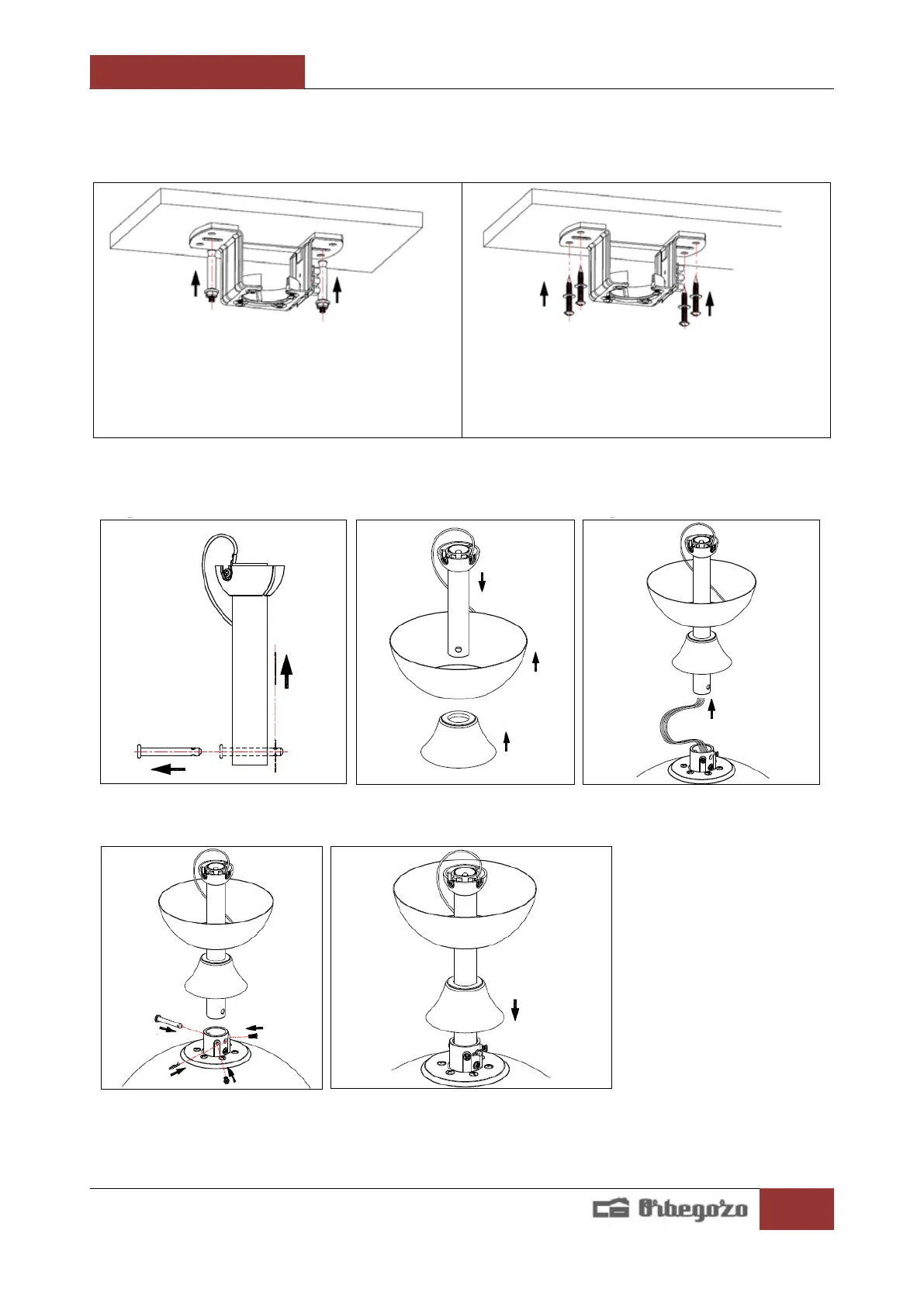 1. Colocar el soporte de techo con los dos tornillos y tacos (dependiendo del tipo de techo)