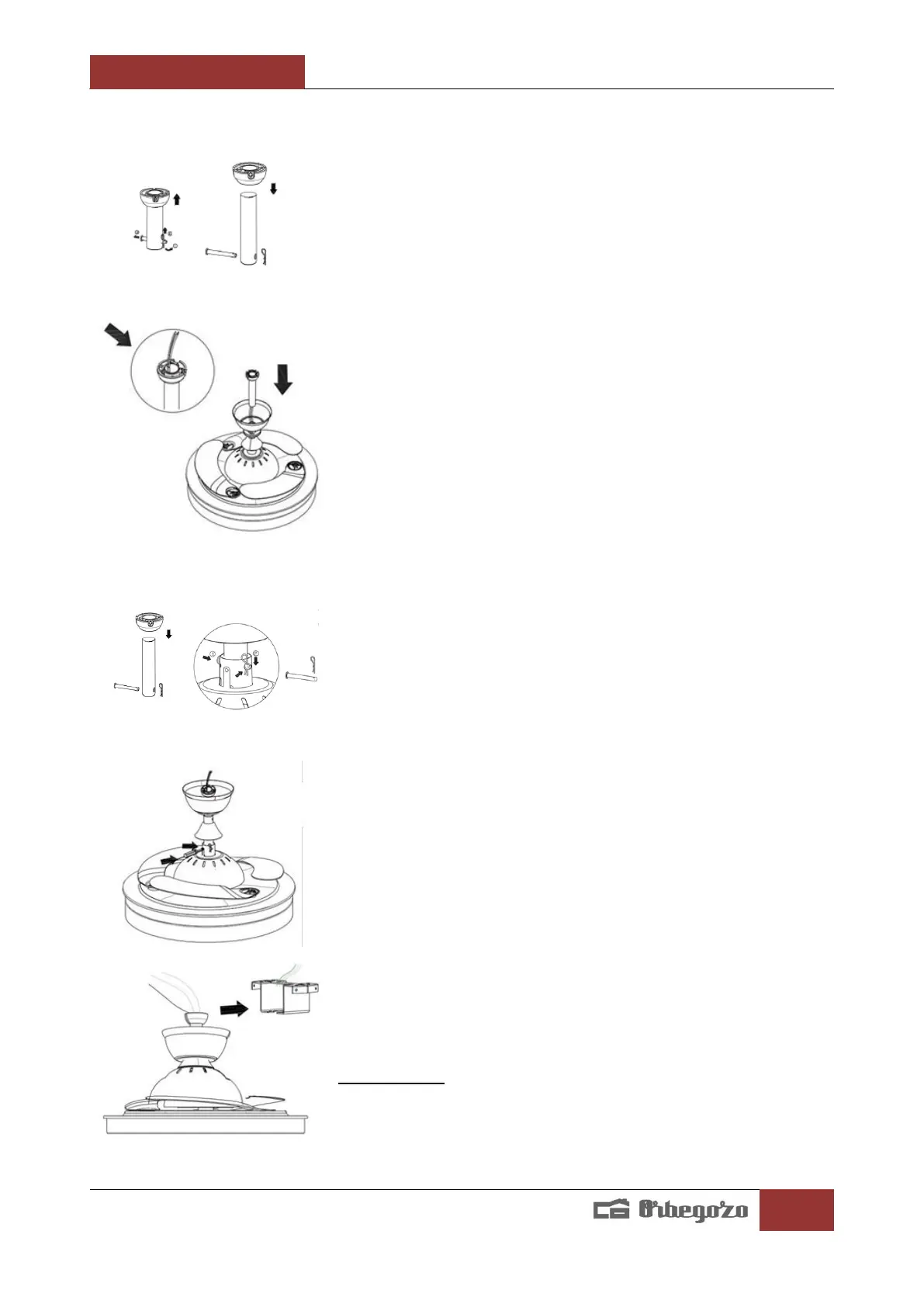 Levante con cuidado el ventilador y coloque la barra de soporte