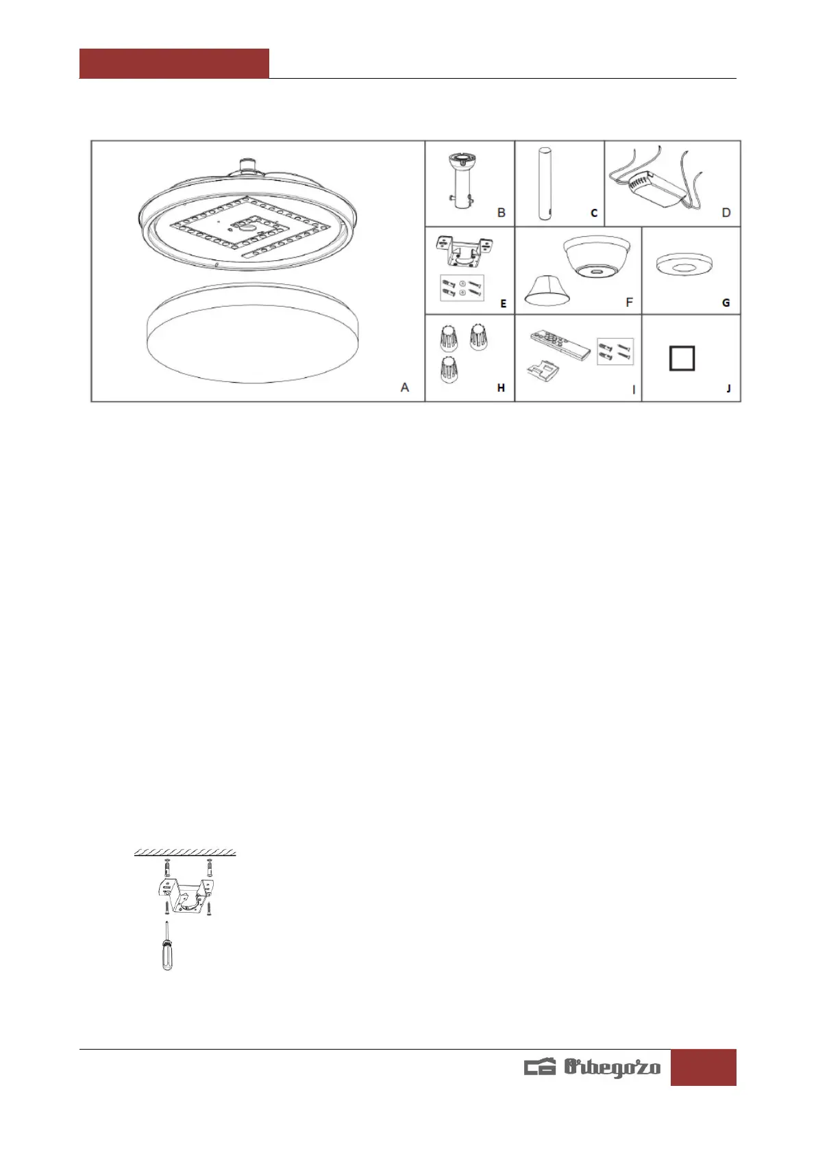 E. Suport de sostre x 1/kit de muntatge x 2
