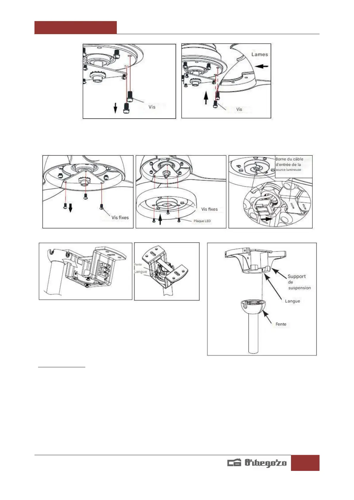au plafond. Assurez-vous que la fente de la boule est