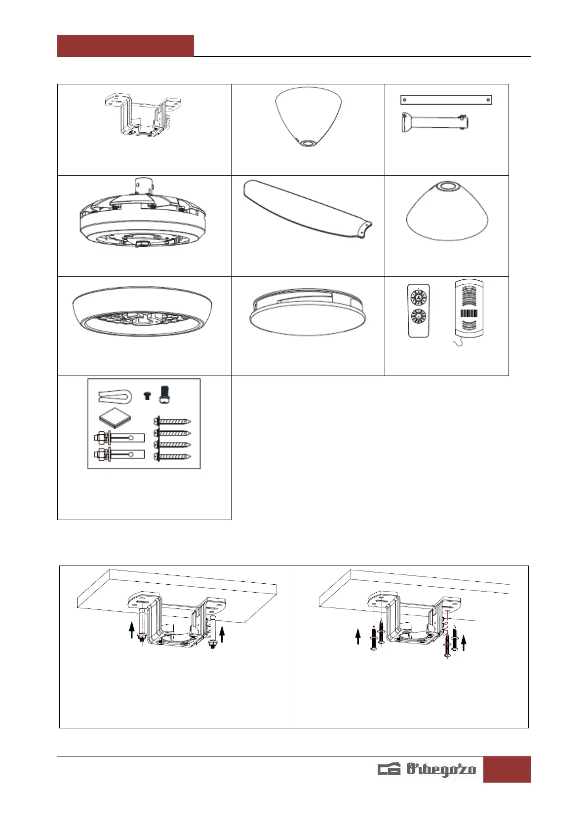 1. Colocar el soporte de techo con los dos tornillos y tacos (dependiendo del tipo de techo)