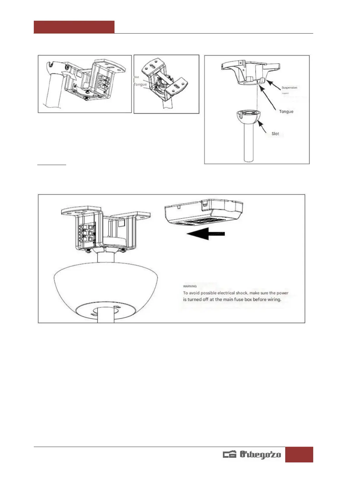 into the suspension bracket attached to the ceiling.