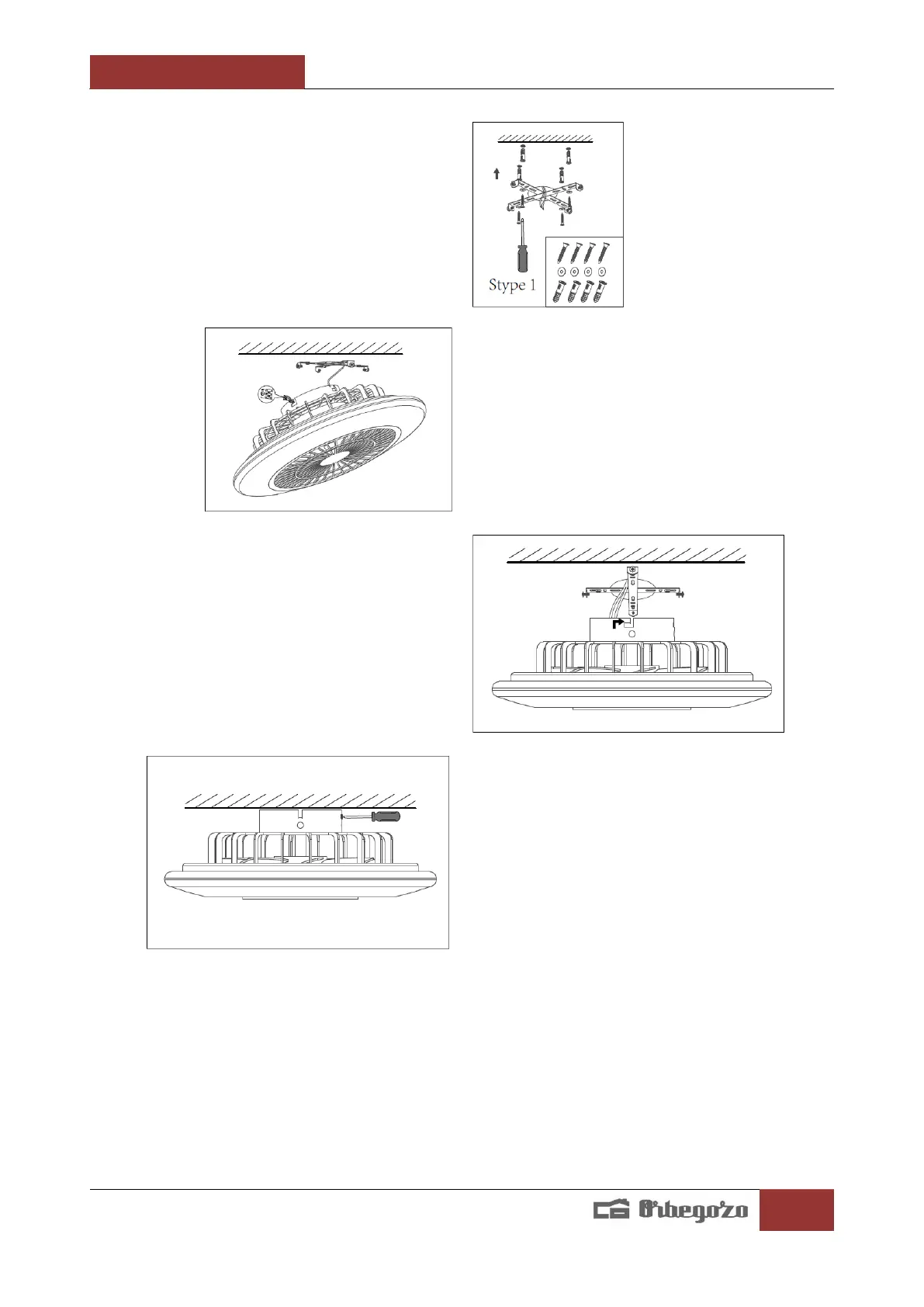 3. Cuelgue el cuerpo del ventilador al soporte de