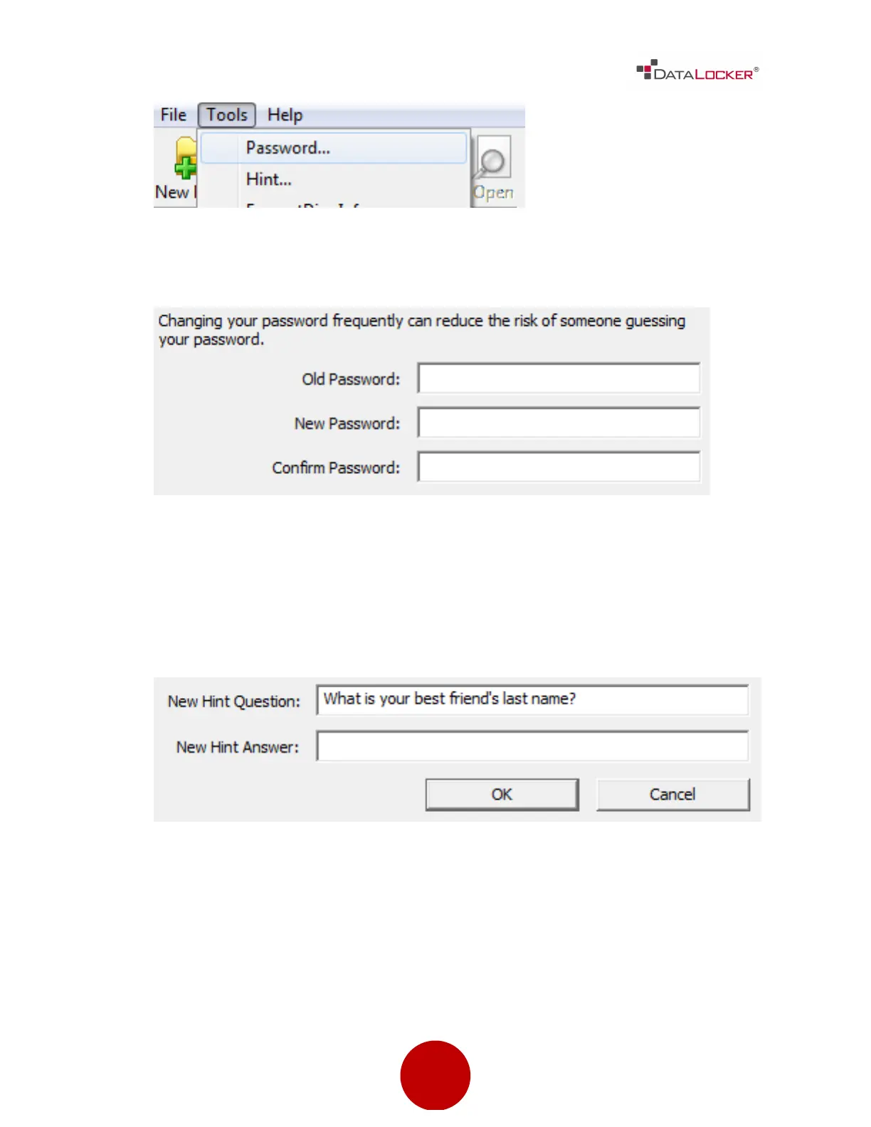 2. In the Change Password Hint dialog box, enter a new hint question and