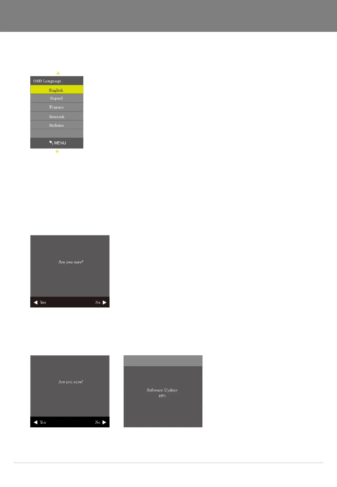 Software update default can be selected by pressing the "Menu" key. Select Yes or No by
