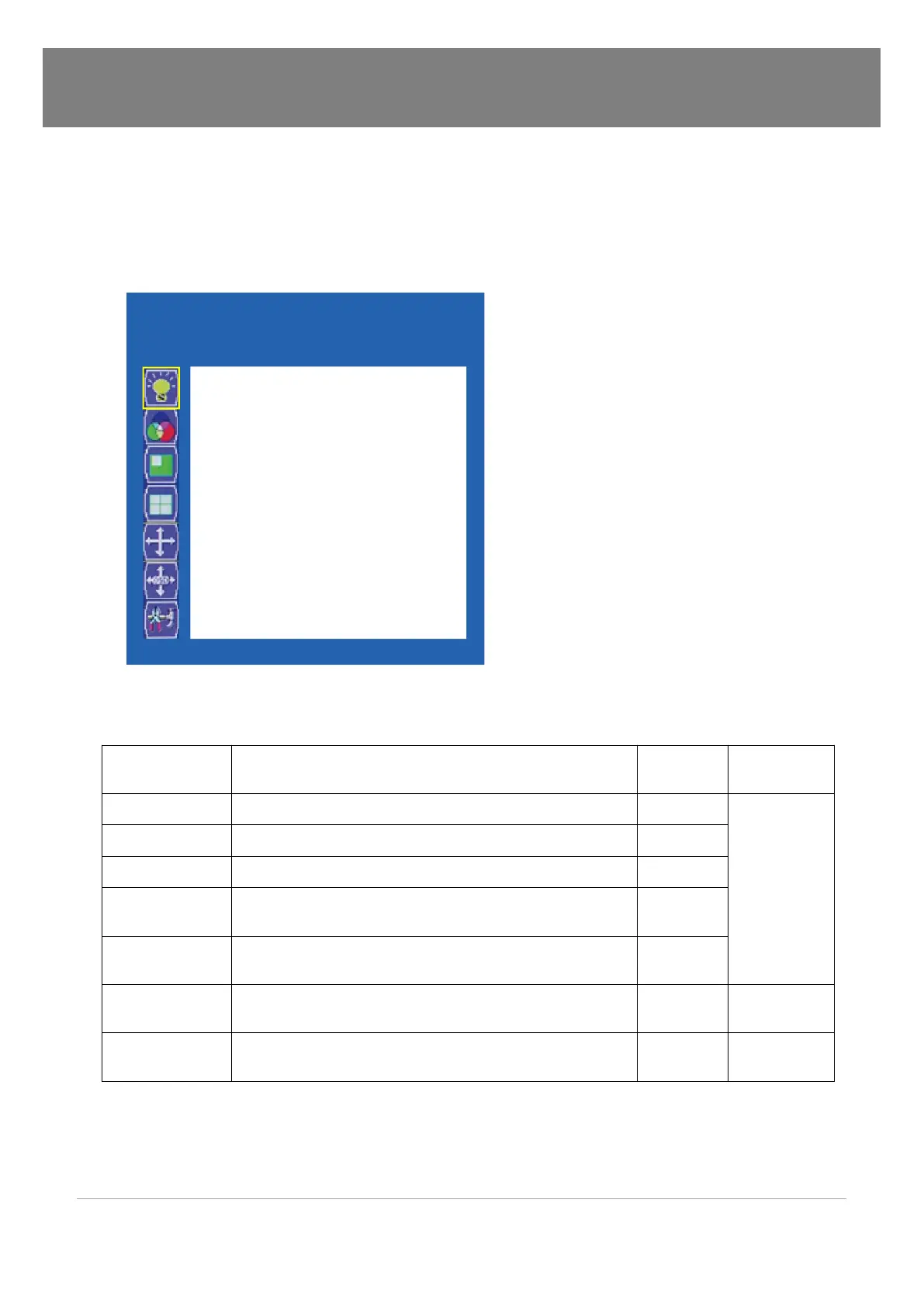 Gamma Select a 2.2 gamma Off or ON Off