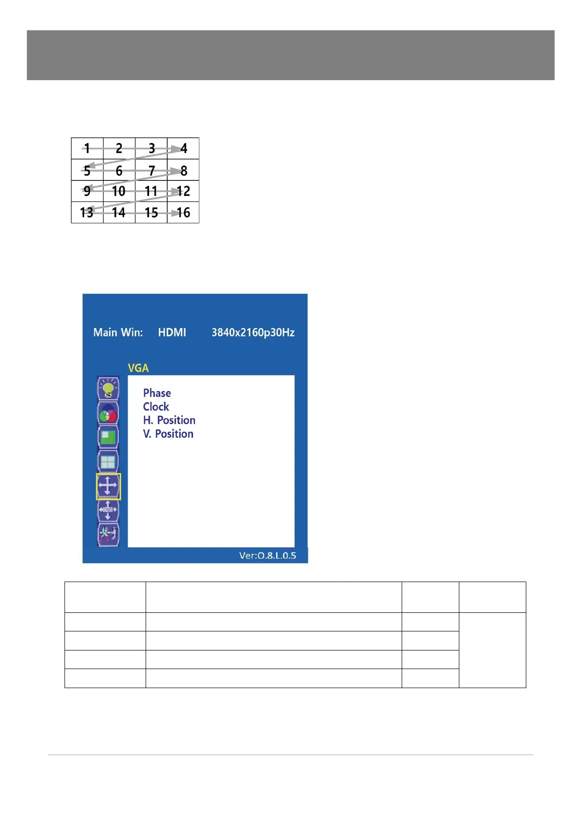 Phase Adjust a phase to clear the screen between 0 ~ 100 50