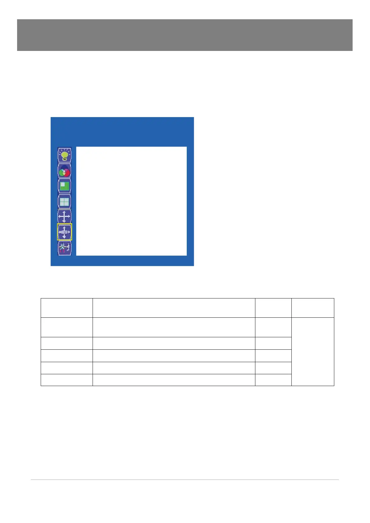 Vertical Adjust a vertical position of the main menu between 0 ~ 100 5