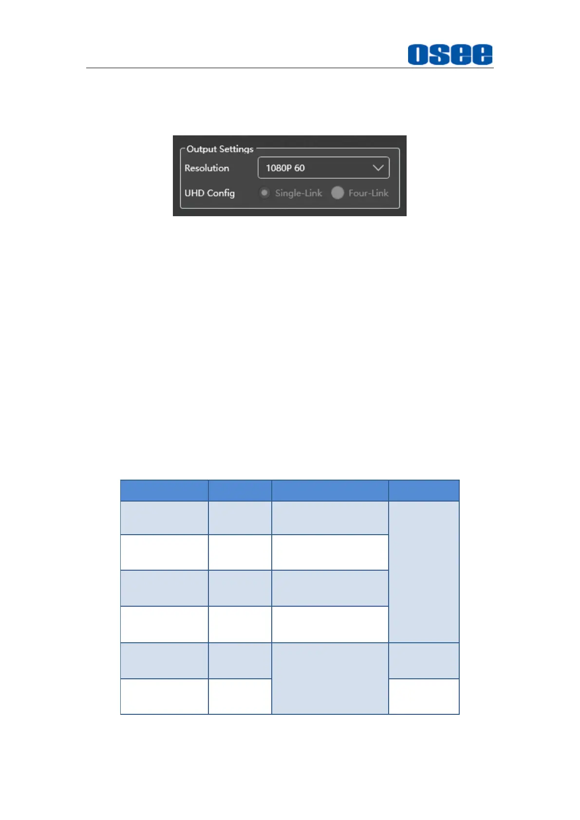 Set output mode. HD SDI uses Dual-Link as default.