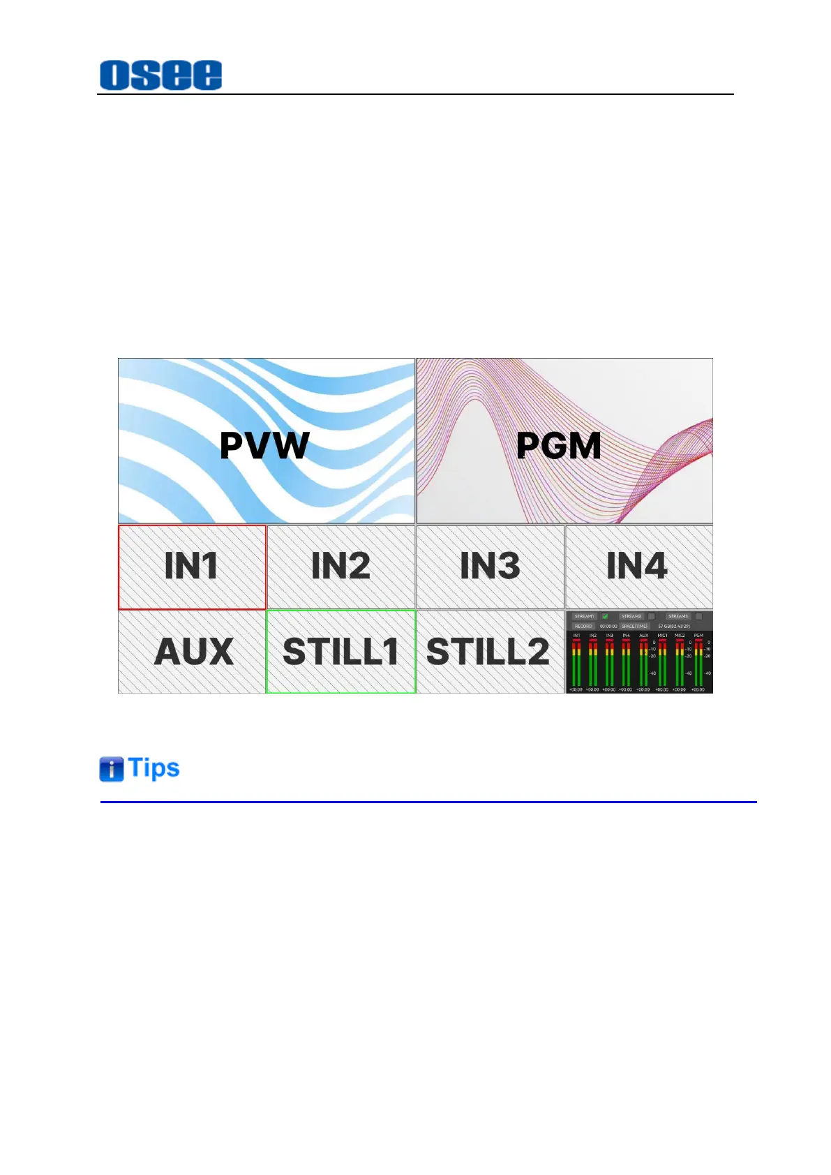 The source selected on the program bus is displayed directly to the program