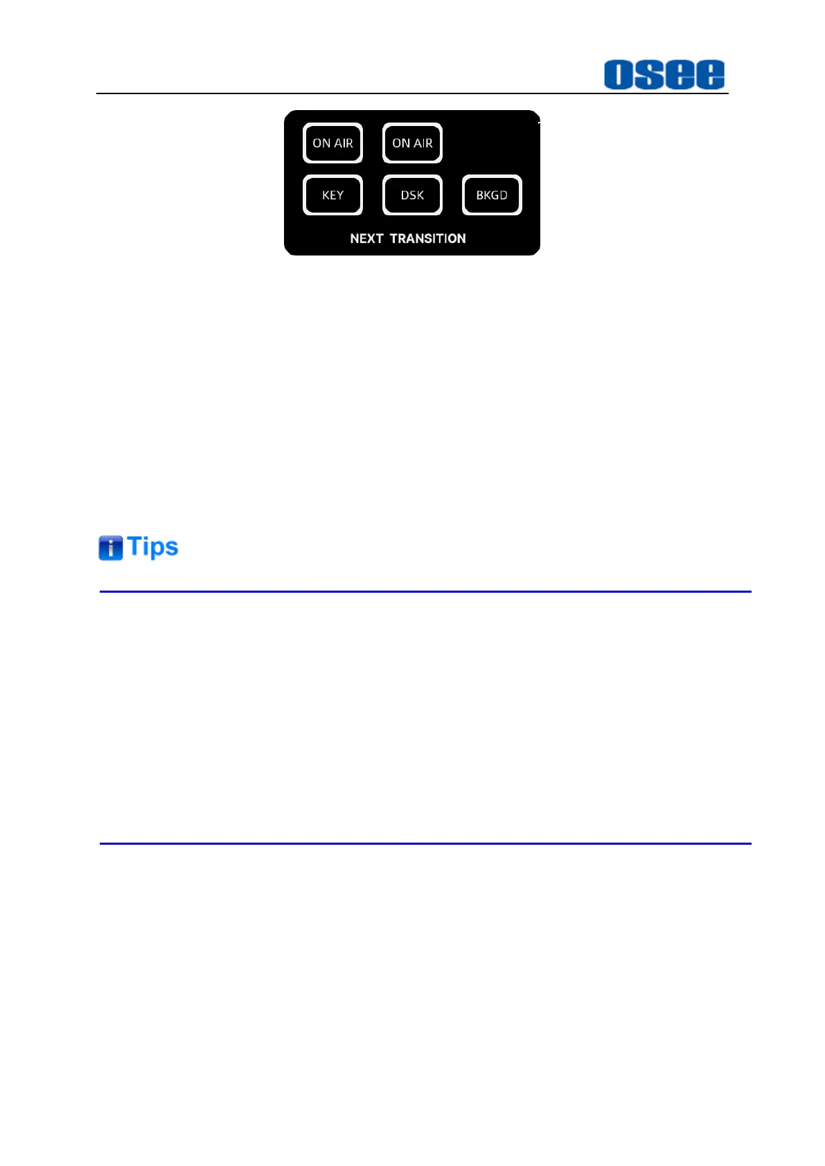CUT, AUTO or T bar according to the status of KEY and DSK settings, to be on air or