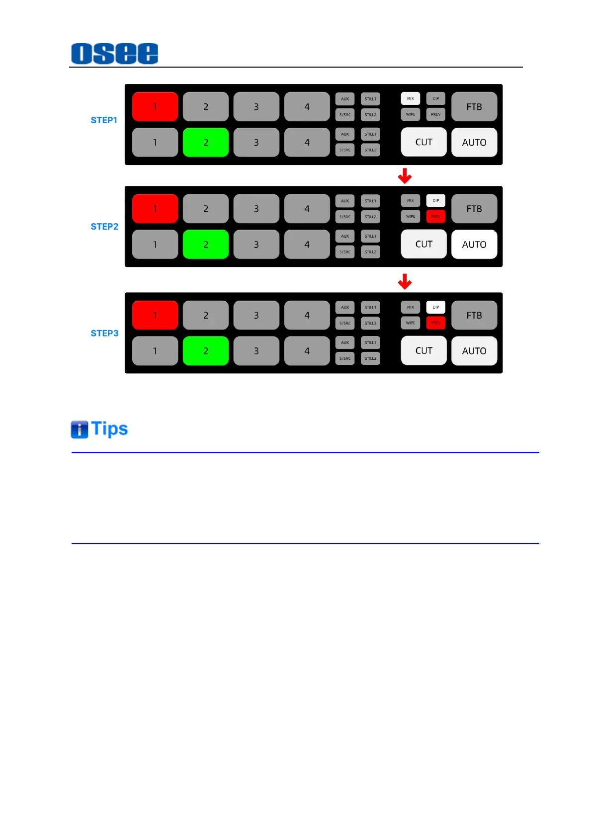 You can select AUTO button or T bar to practice your selected transition to confirm