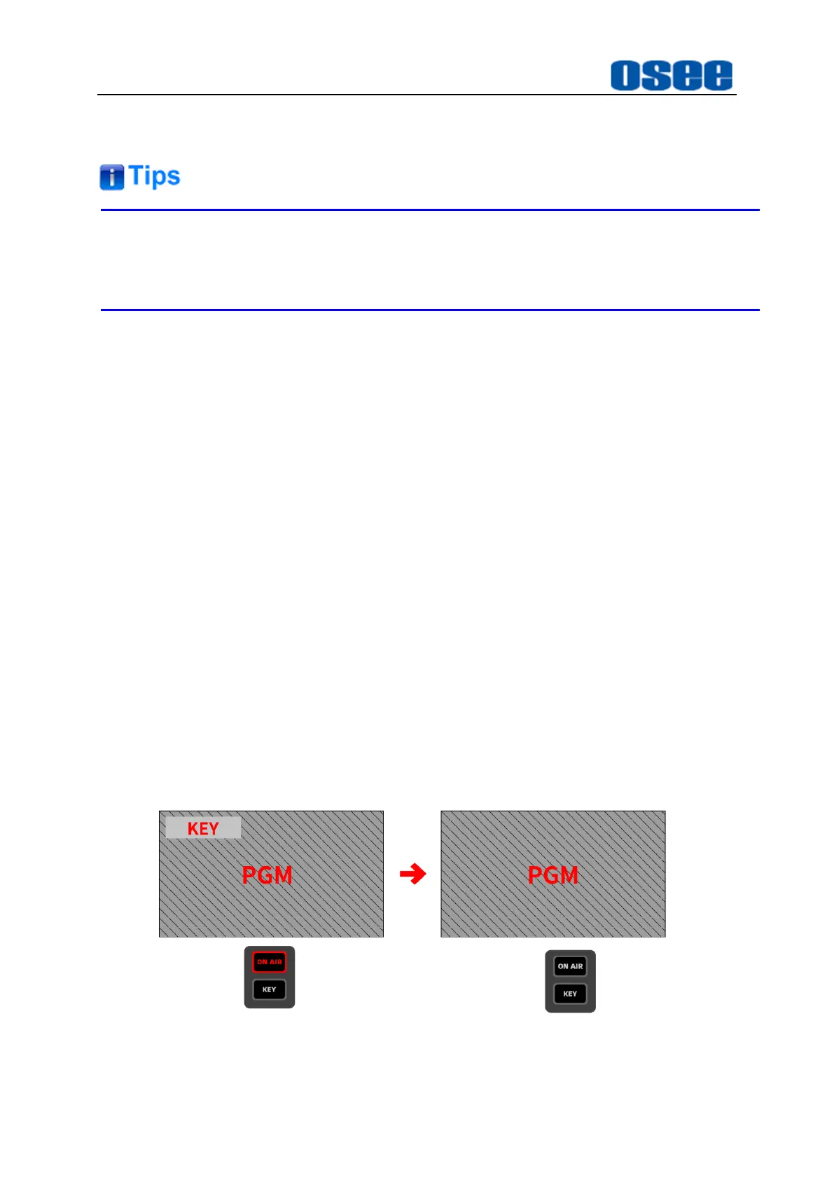 1. Press ON AIR button to enable it directly, the upstream/downstream keyer is