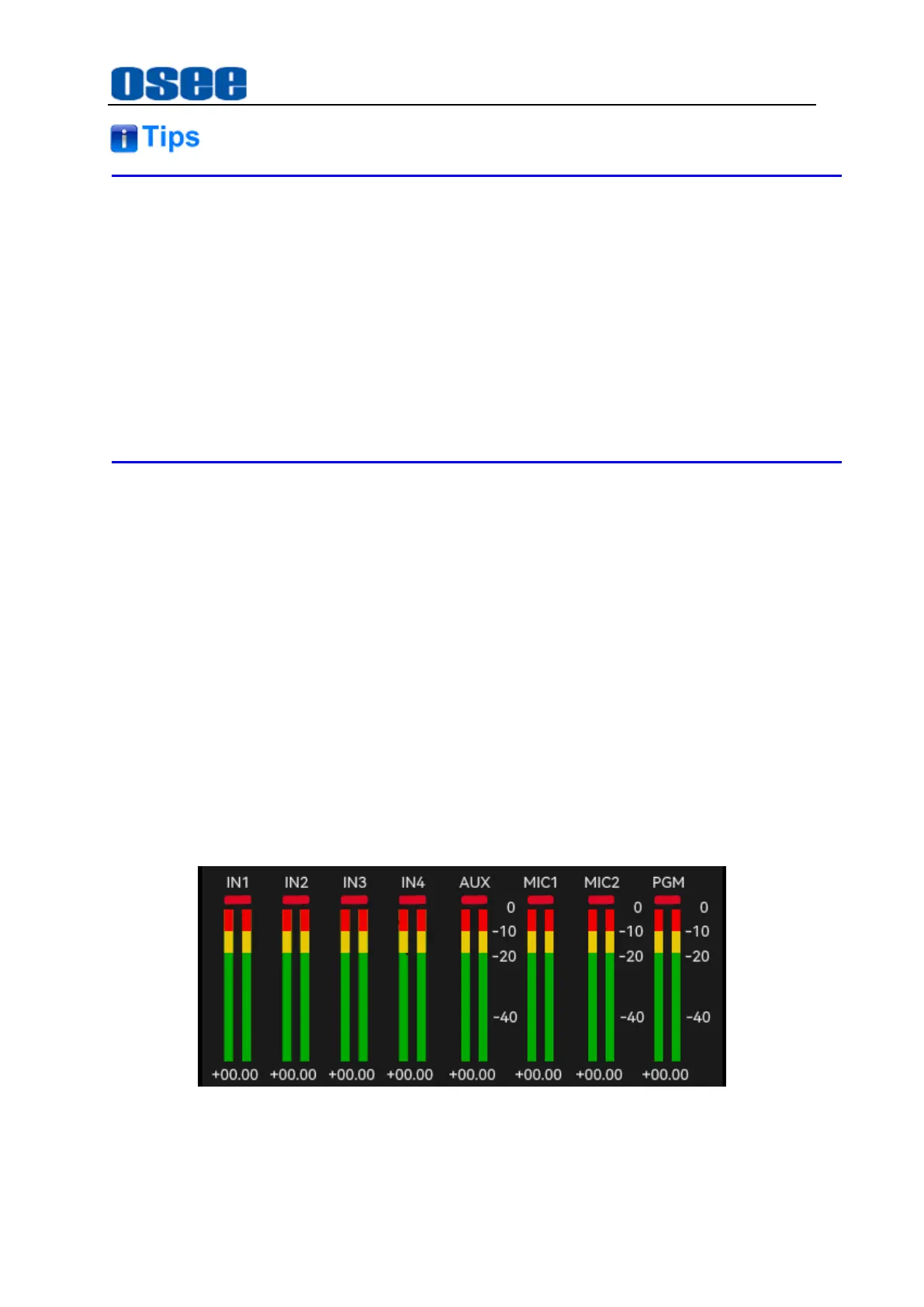 HDMI4, AUX, MIC1, MIC2 and PGM. You can monitor the audio inputs and the