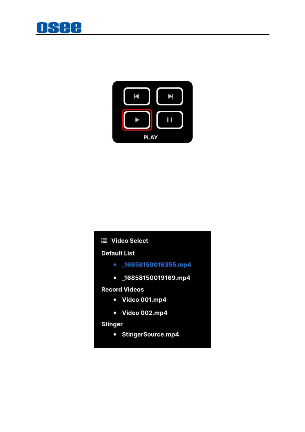 Long press PLAY button to show the play list, which contains all the videos