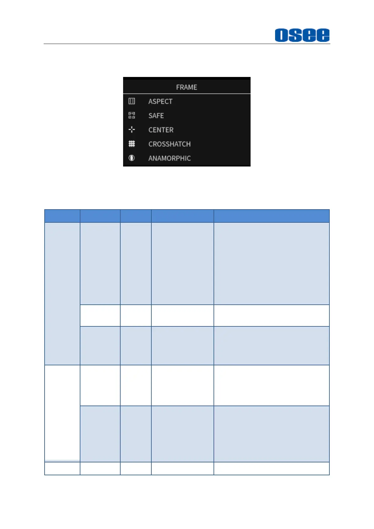 Table 6.1-2 Description of Frame Tools