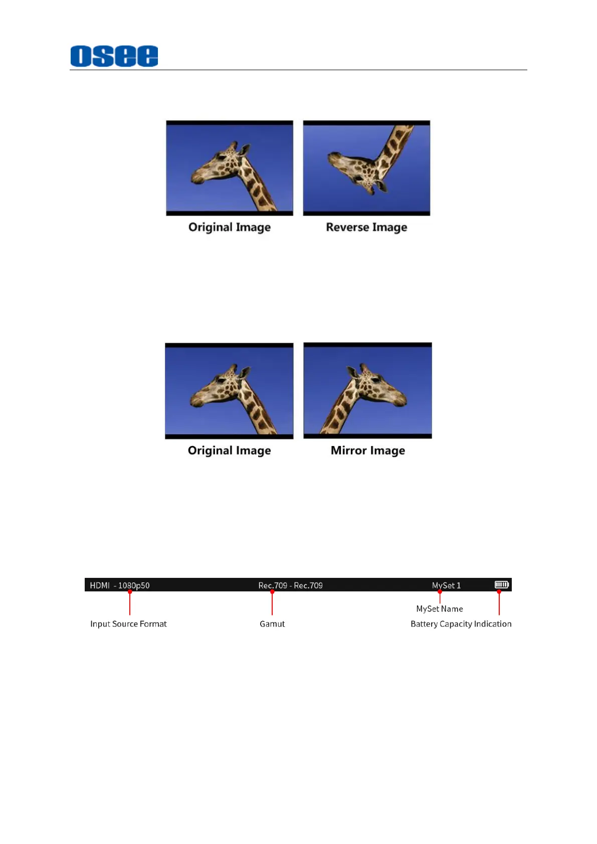 format, gamut, scene ID and battery capacity indication.