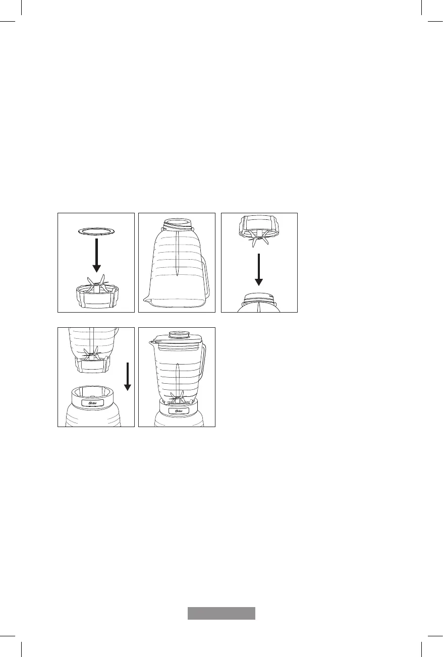 3. Coloque o conjunto da lâmina integrada com a base com rosca da jarra sobre o anel