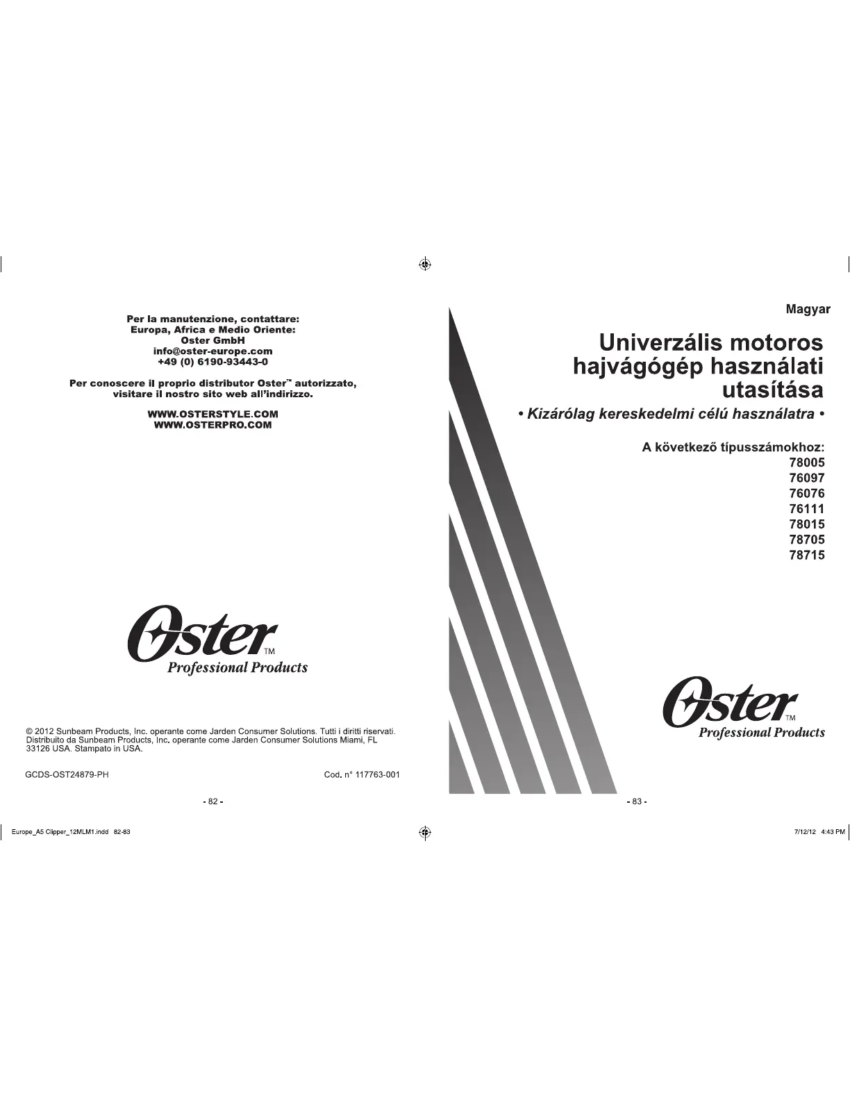 Oster Golden A5 078005 handleiding
