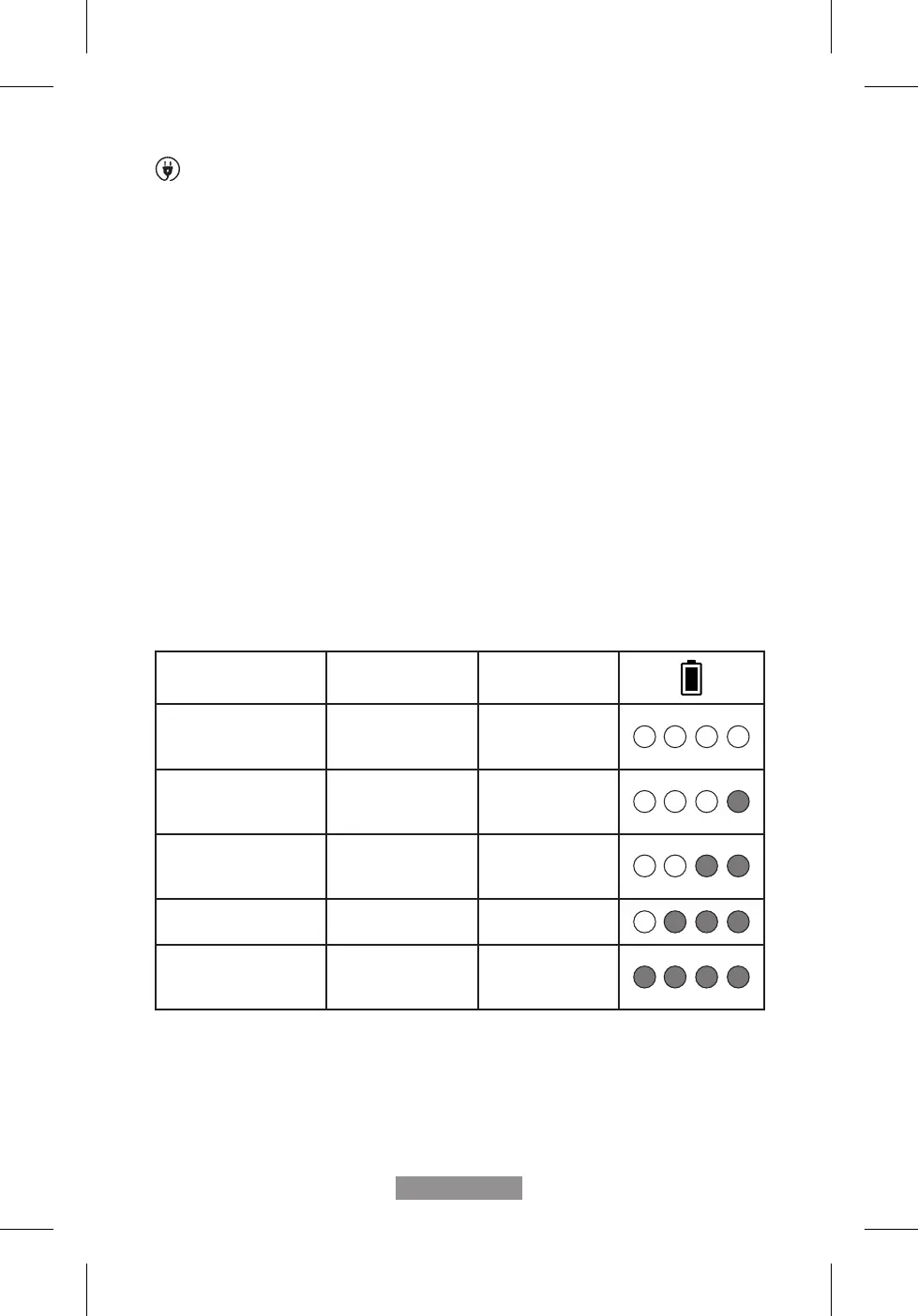 el nivel de la batería o el estado de carga. Ver la tabla a continuación.