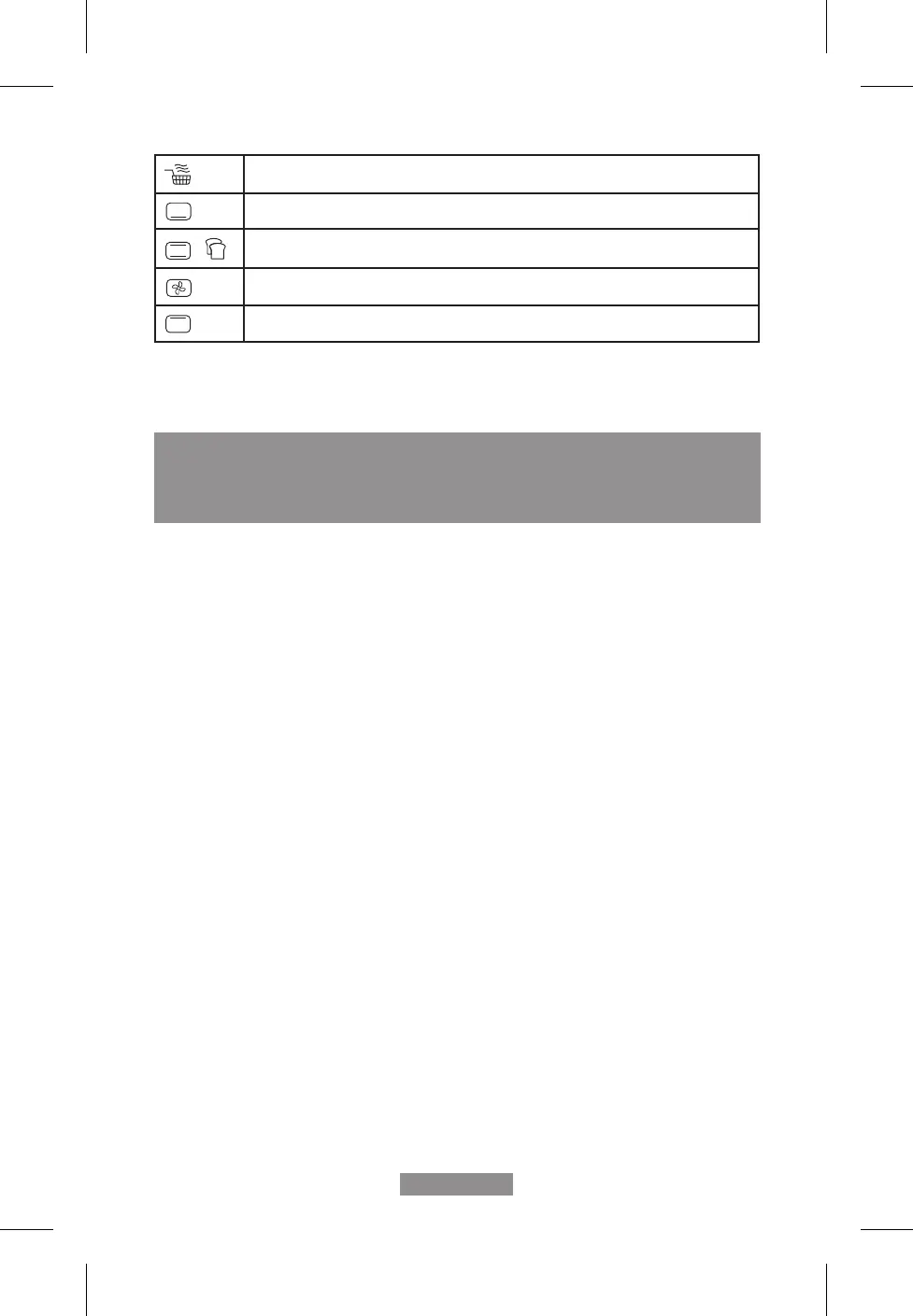 Air Fry: Upper heating elements + lower heating elements + high speed fan