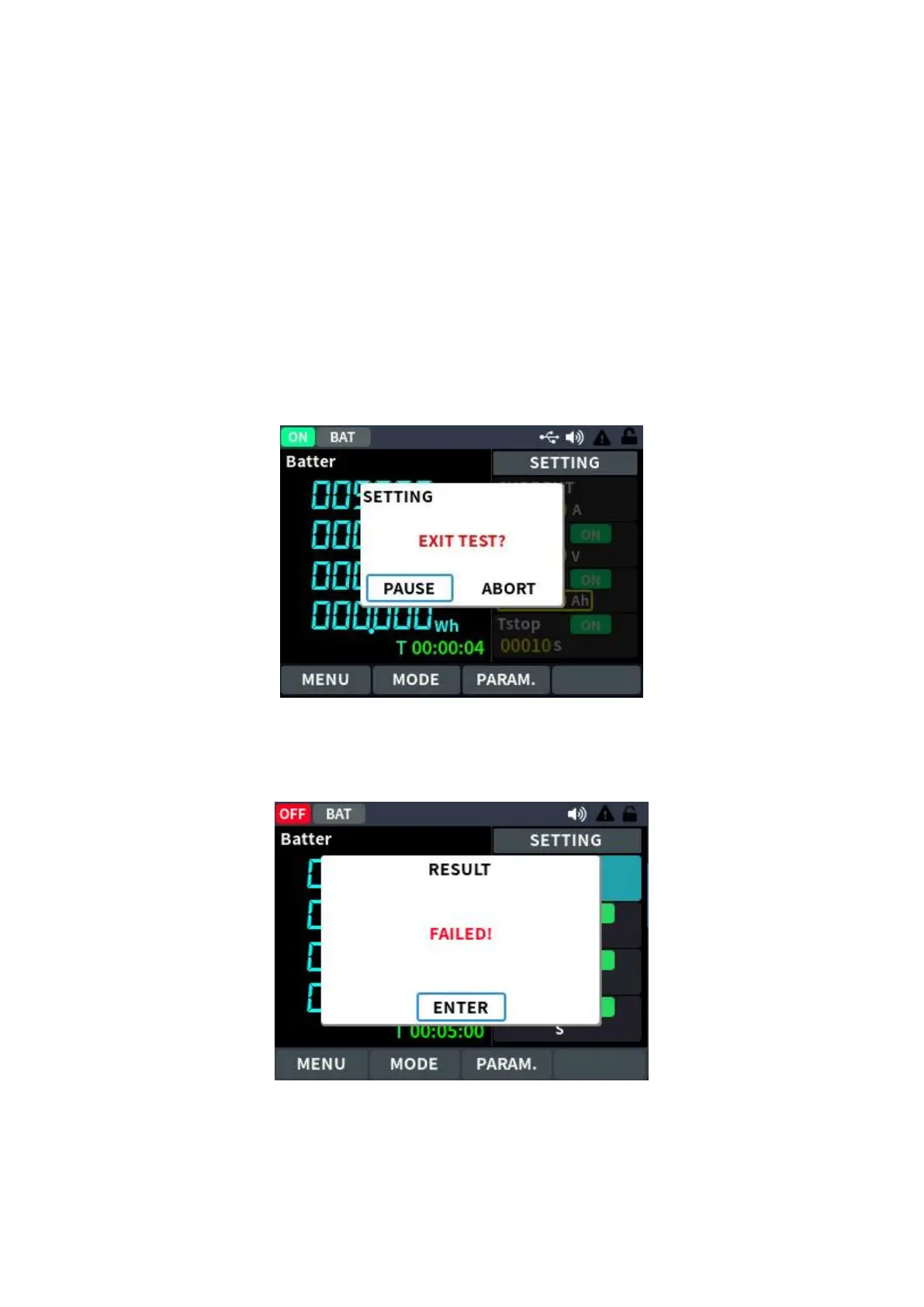 discharge test, you can select the corresponding option through the On/Off