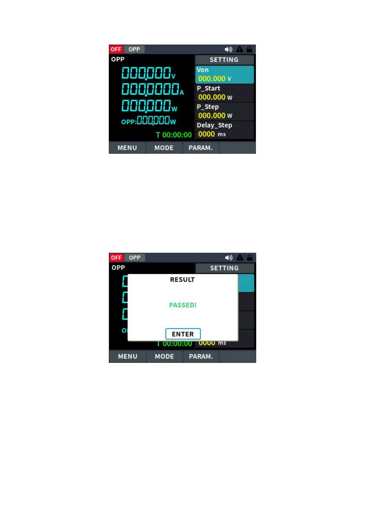 1. Select OPP test mode in programming mode, enter the OPP test function