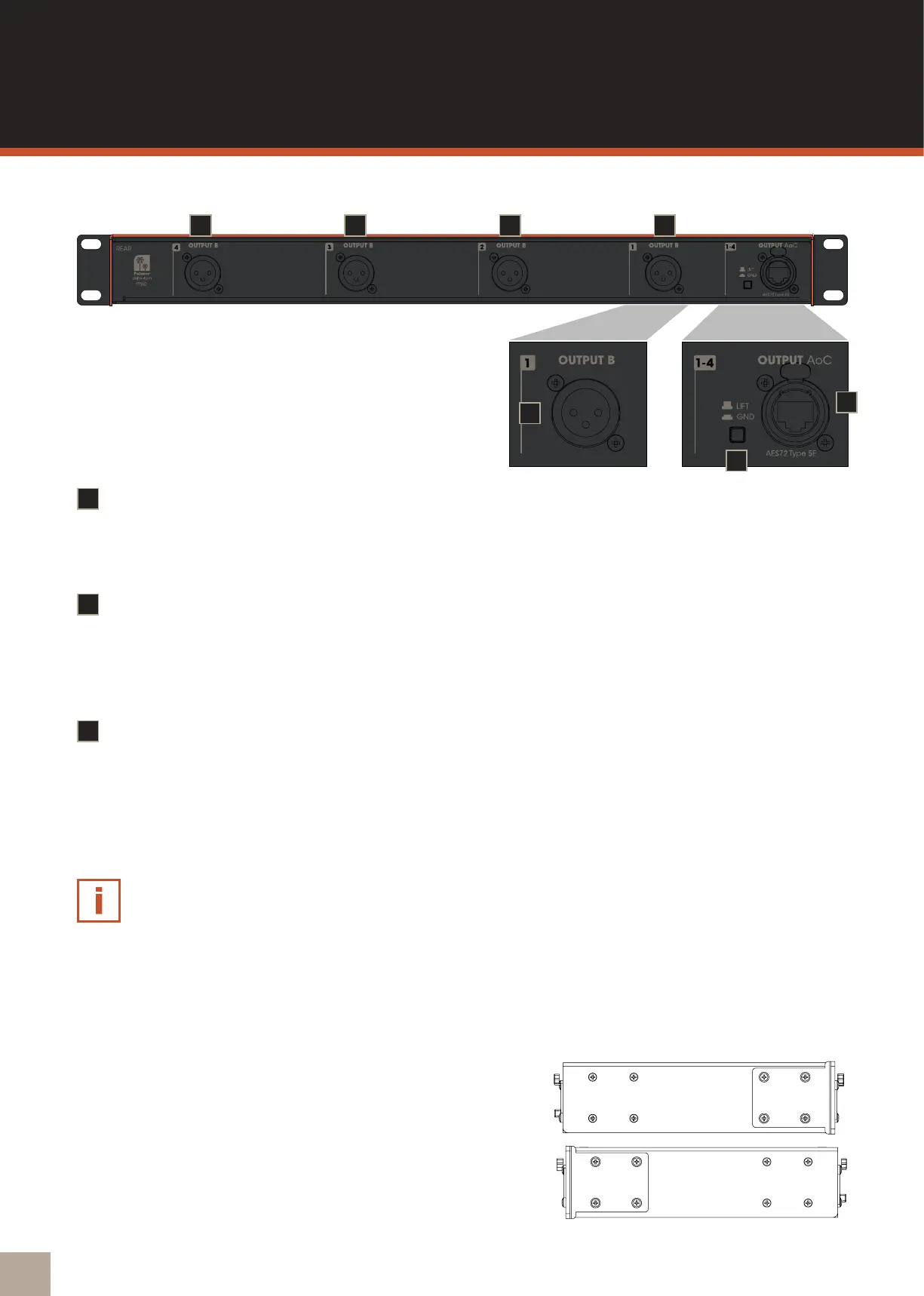Balanced line outputs 1 to 4 with lockable etherCON socket (AES72 Type 5E Standard). Separate and