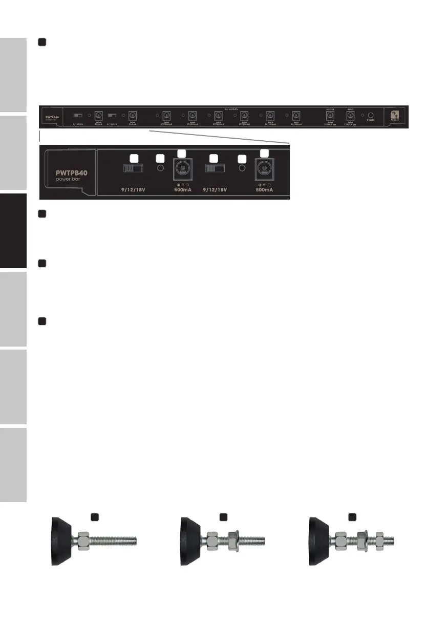pour le branchement de pédales d'eet aux valeurs nominales correspondantes (9 V / 12 V / 18 V CC/