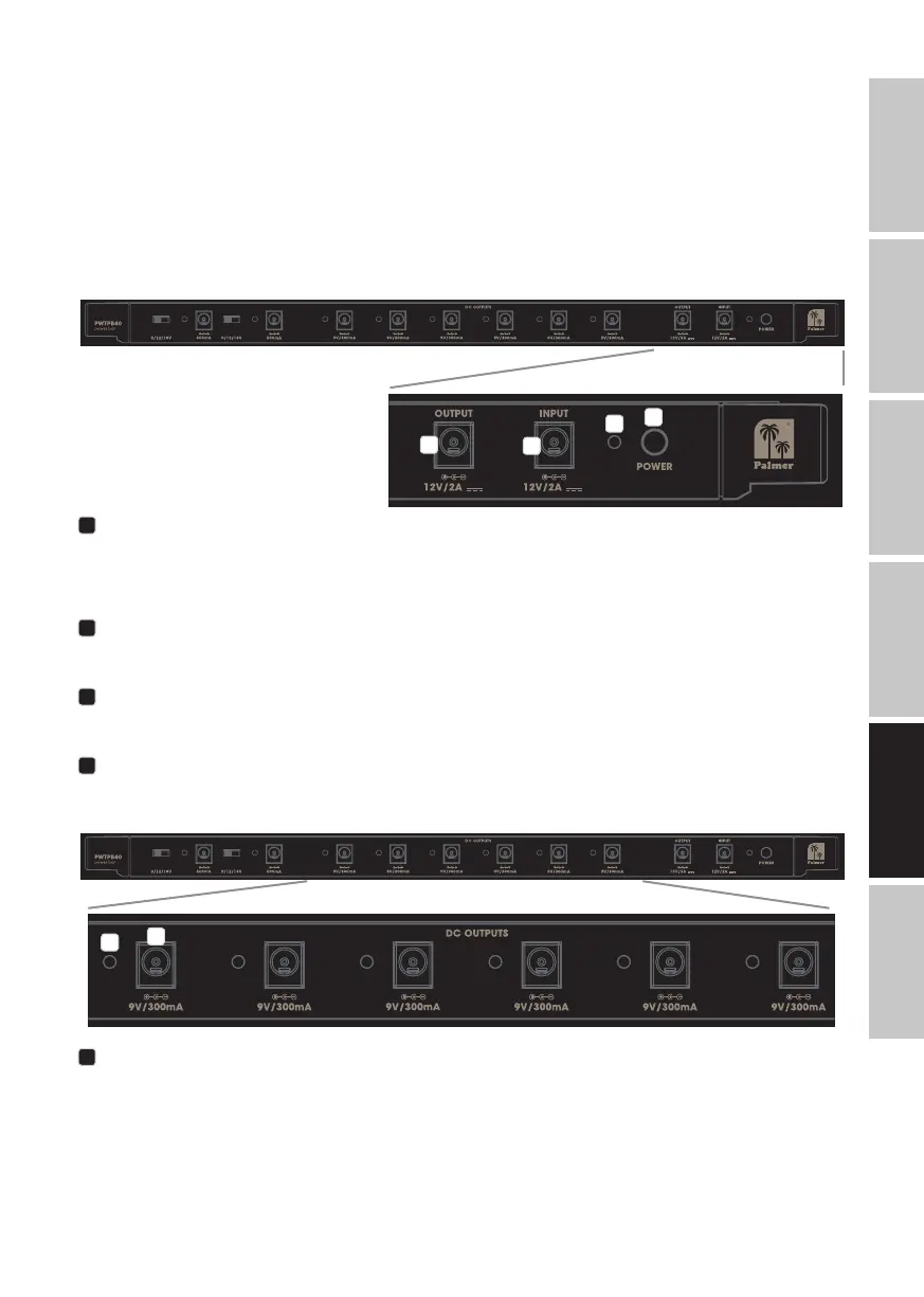 efektów z odpowiednimi wartościami przyłączowymi (9 V DC / plus na zewnątrz / do 300 mA).