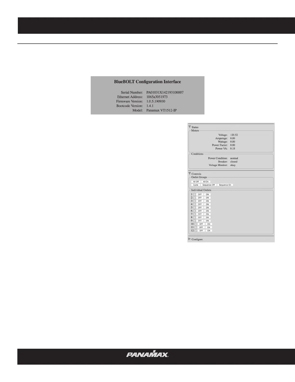 The Conguration screen is used to set up your password protection, set the IP as Static or DHCP (default) and congure advanced device settings.