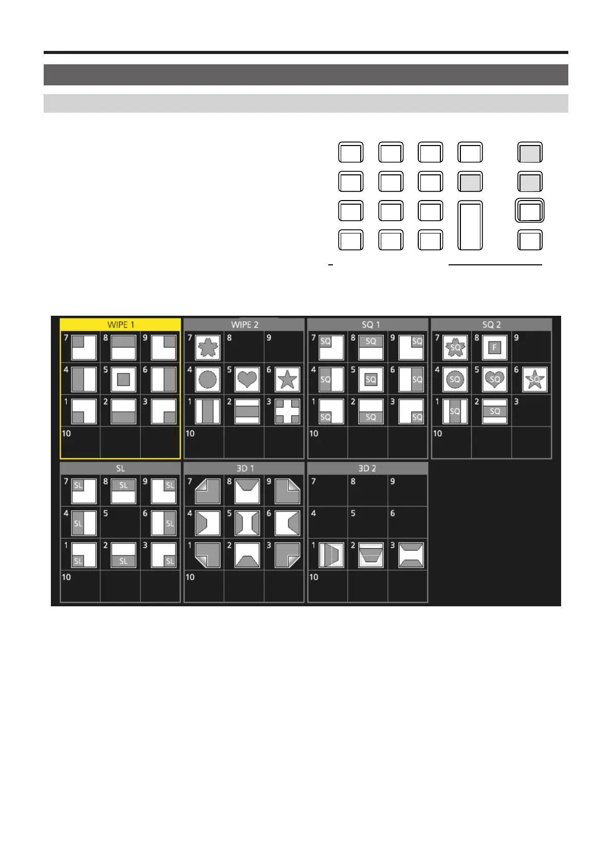 When in 4K mode, only WIPE 1 and WIPE 2 are available. The other patterns are available with the optional 4K DVE unit