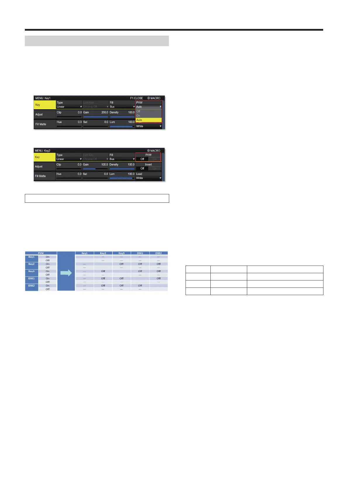 The PVW settings of Key2, Key3, DSK1, and DSK2 are linked