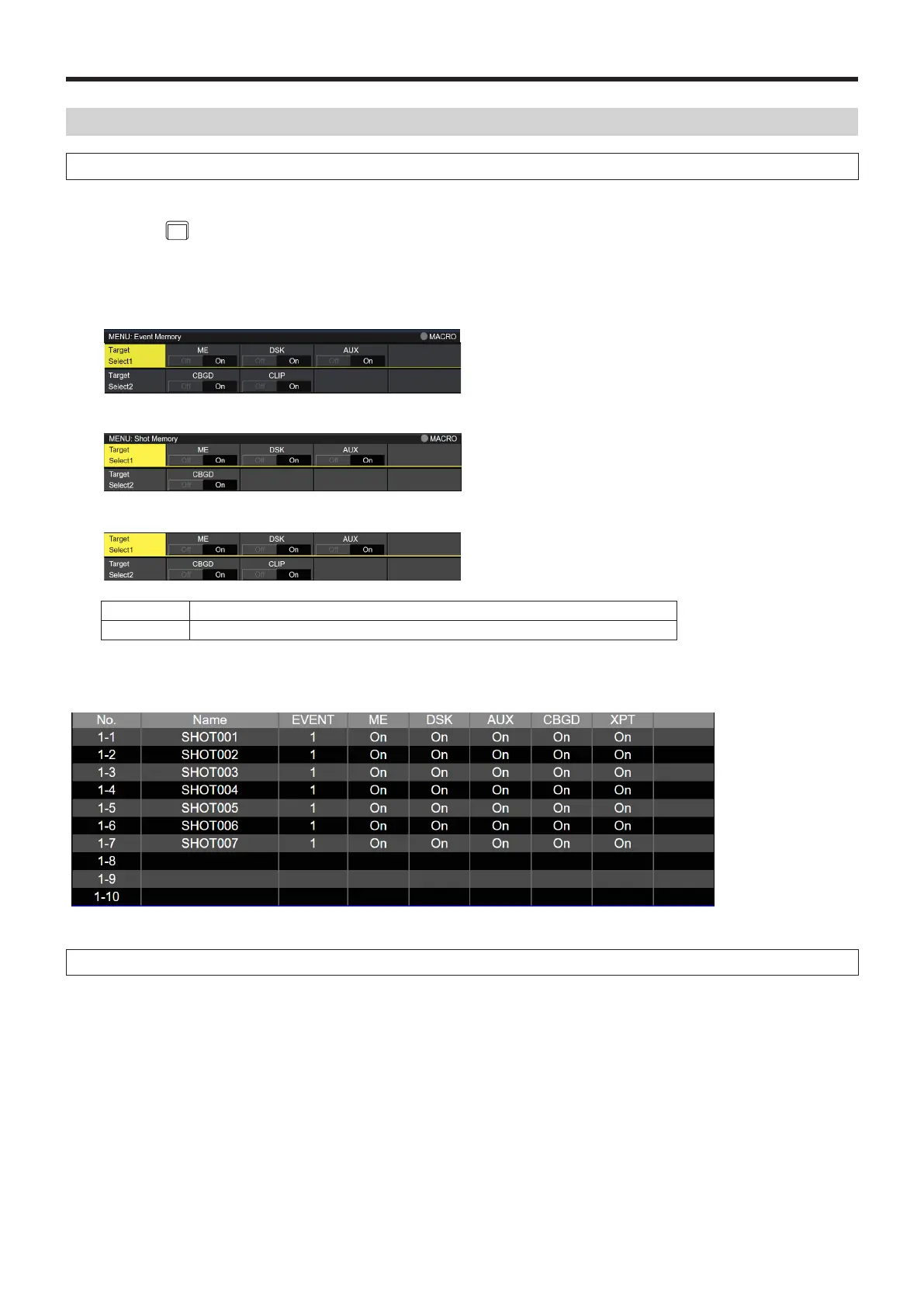 button to display the Event Memory menu (Shot Memory menu or Macro menu).