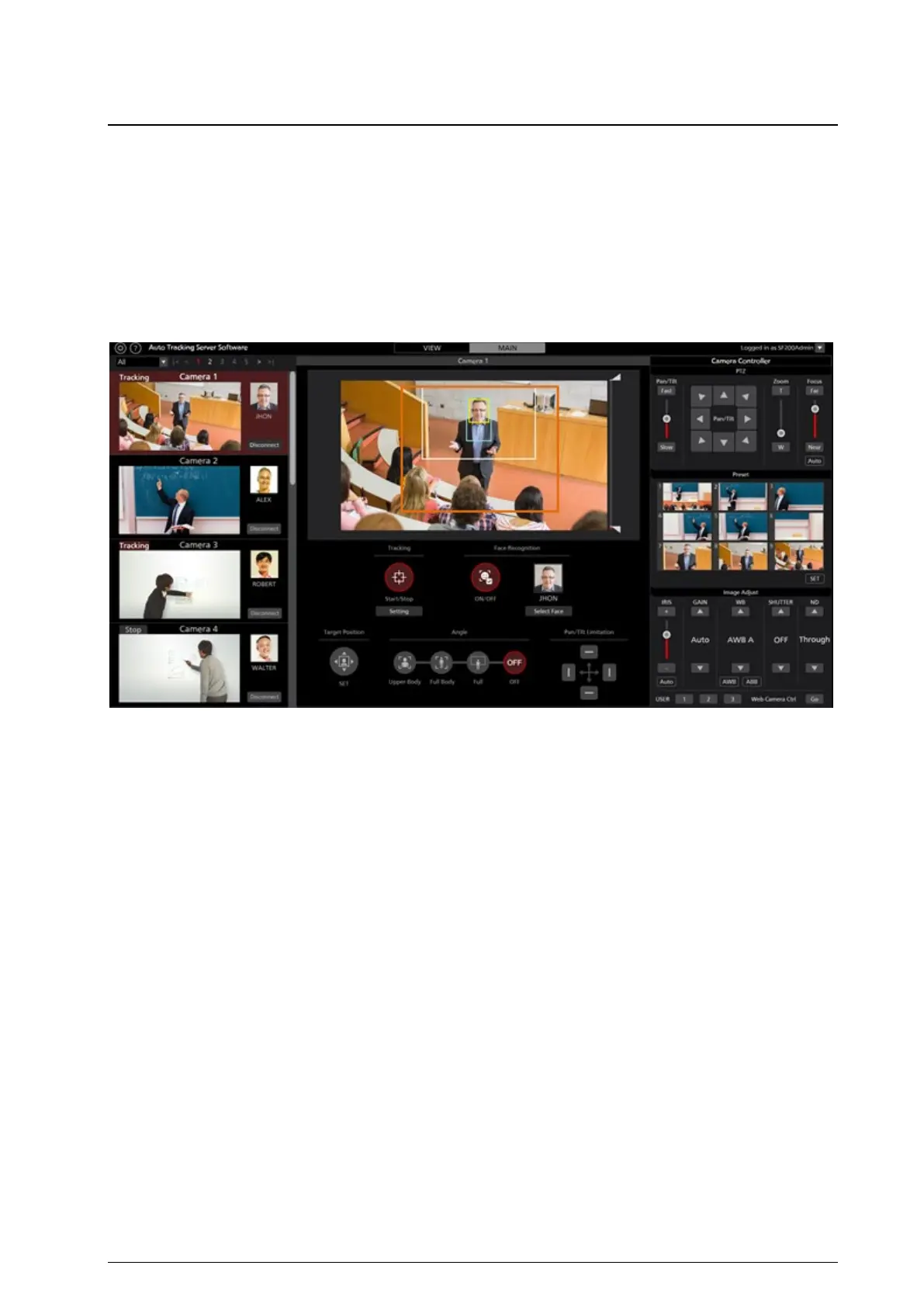 2. Select the camera for which operations are to be performed from the camera list display on the left end of the