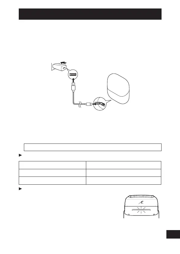 • Opladning er fuldført efter ca. 1 time. Opladningstiden kan forkortes,
