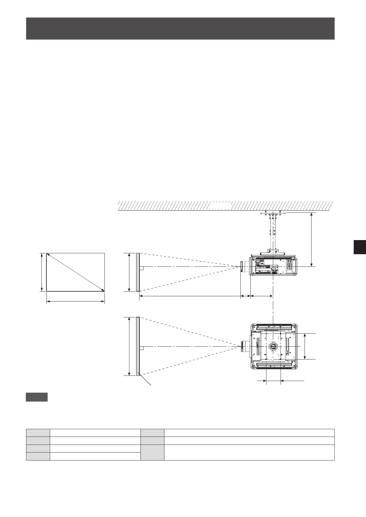 When any of the following lens is attached, the dimensional relationship between the screen and the projector will