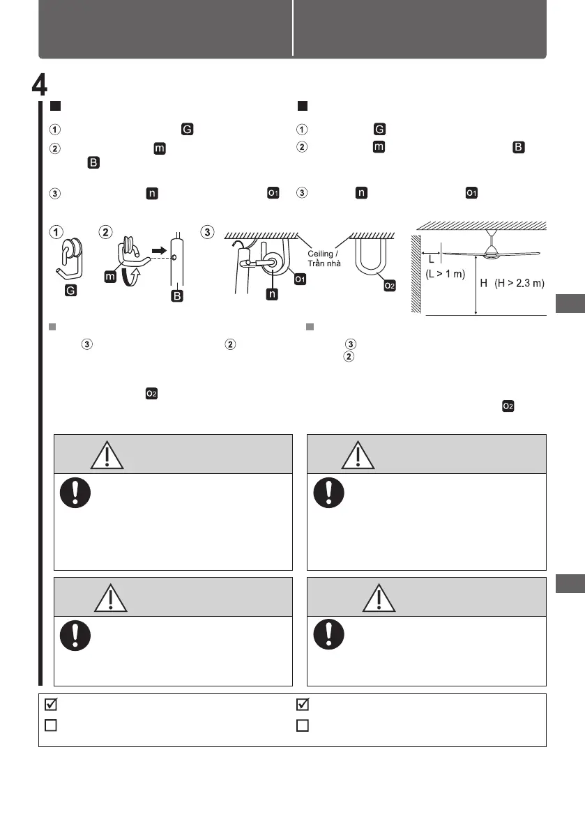 • Đảm bảo giữ Quạt Trần ở tư thế thẳng đứng
